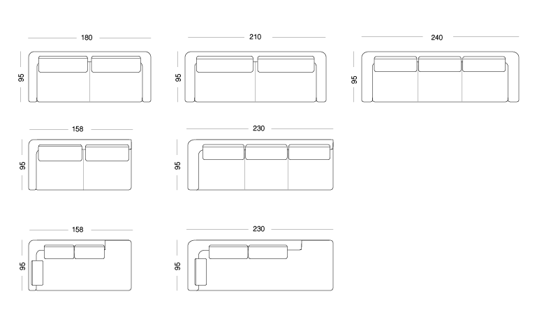 tre posti cm L.240 x P.95 x H.85